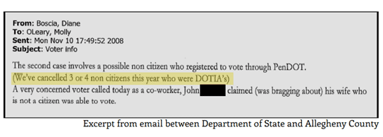 However, Allegheny County election officials disclosed to us hundreds of pages detailing how noncitizens were regularly offered voter registration by government employees and third-party drives, despite language barriers and clear understandings as to what they were signing.
