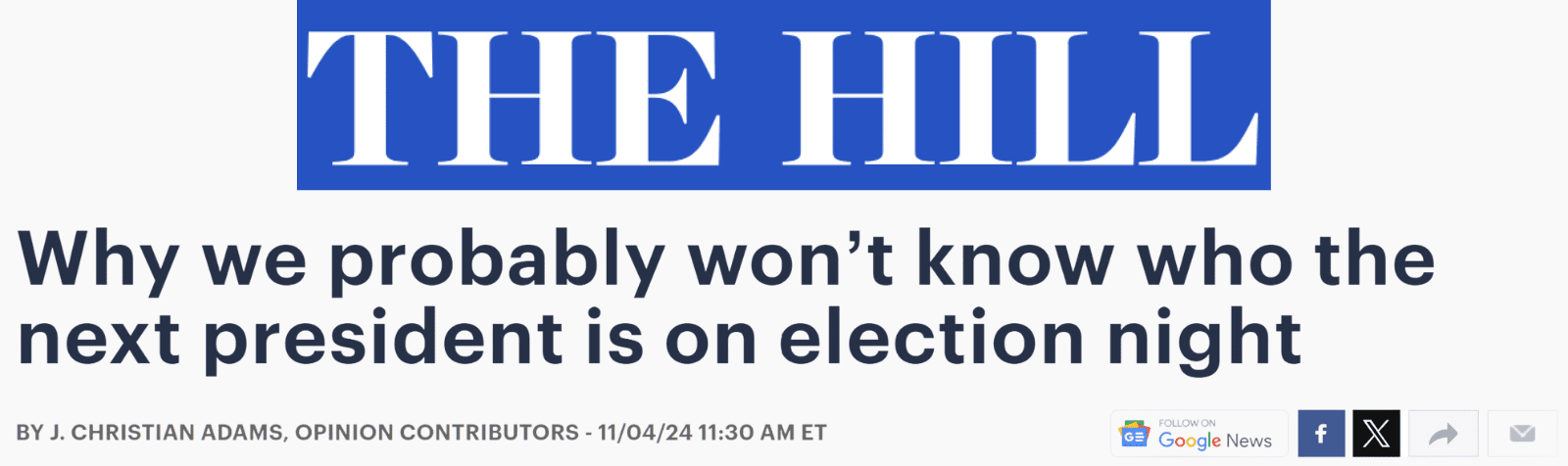 ICYMI: PILF President J. Christian Adams penned an op-ed in The Hill: Why We Probably Won’t Know Who the Next President is on Election Night