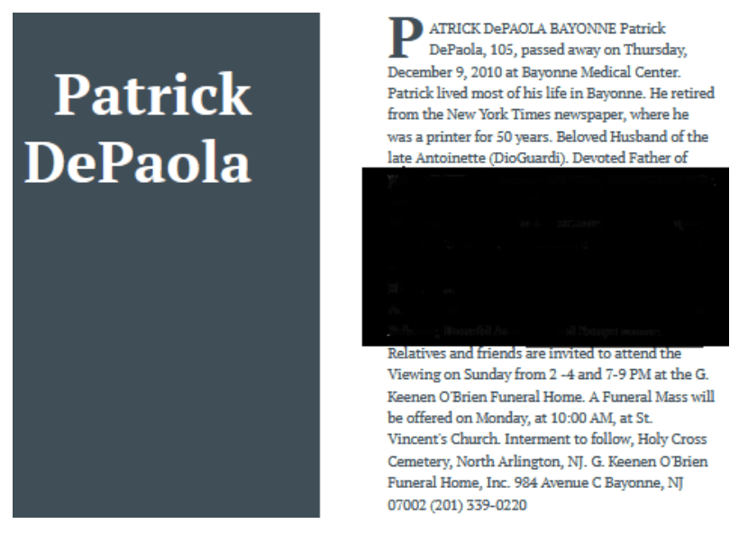 One startling example is Patrick DePaola of Bayonne. He was born, according to the voter roll, on July 28, 1905. He worked for 50 years as a printer for The New York Times.